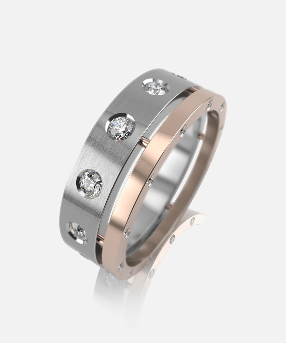Ювелирный рынок России до этого не видел обручальных колец с матированием и текстурой вместо гладкости, соединения нескольких цветов золота. Карбон и керамику в ювелирных домах до этого момент никто не применял. Обручальные кольца становятся текстурными, рельефными, появляются вставки. Но самое главное – они интересны молодоженам! Так начинается история первой легендарной коллекции обручальных колец коллекции CHANCE ювелирного бренда GRAF КОЛЬЦОВ.