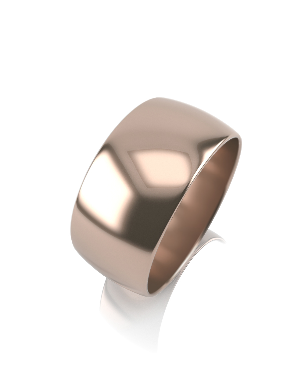 Широкое обручальное кольцо из красного золота 585 пробы.