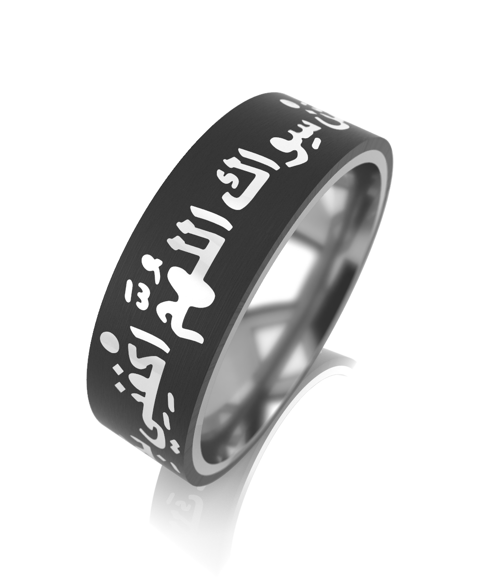 Изысканное кольцо из серебра 925 пробы с карбоном в гравировке, отражающей духовность и гармонию исламской культуры.