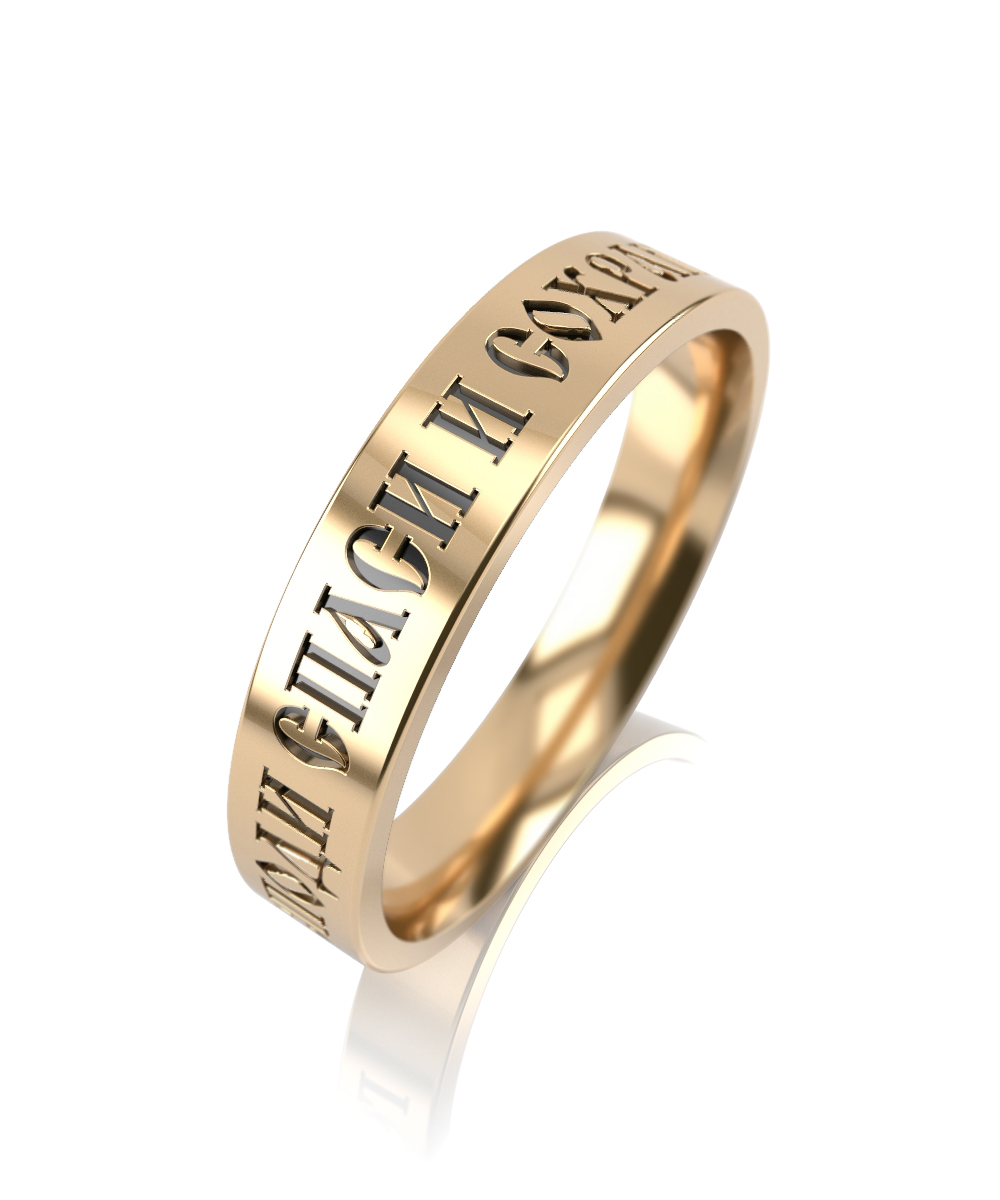 Кольцо из желтого золота 585 пробы СПАСИ И СОХРАНИ.