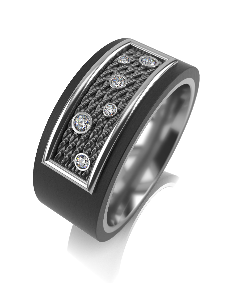 Особую оригинальность кольцу придает текстура на карбоне, которая свидетельствует об уникальном вкусе его обладателя.