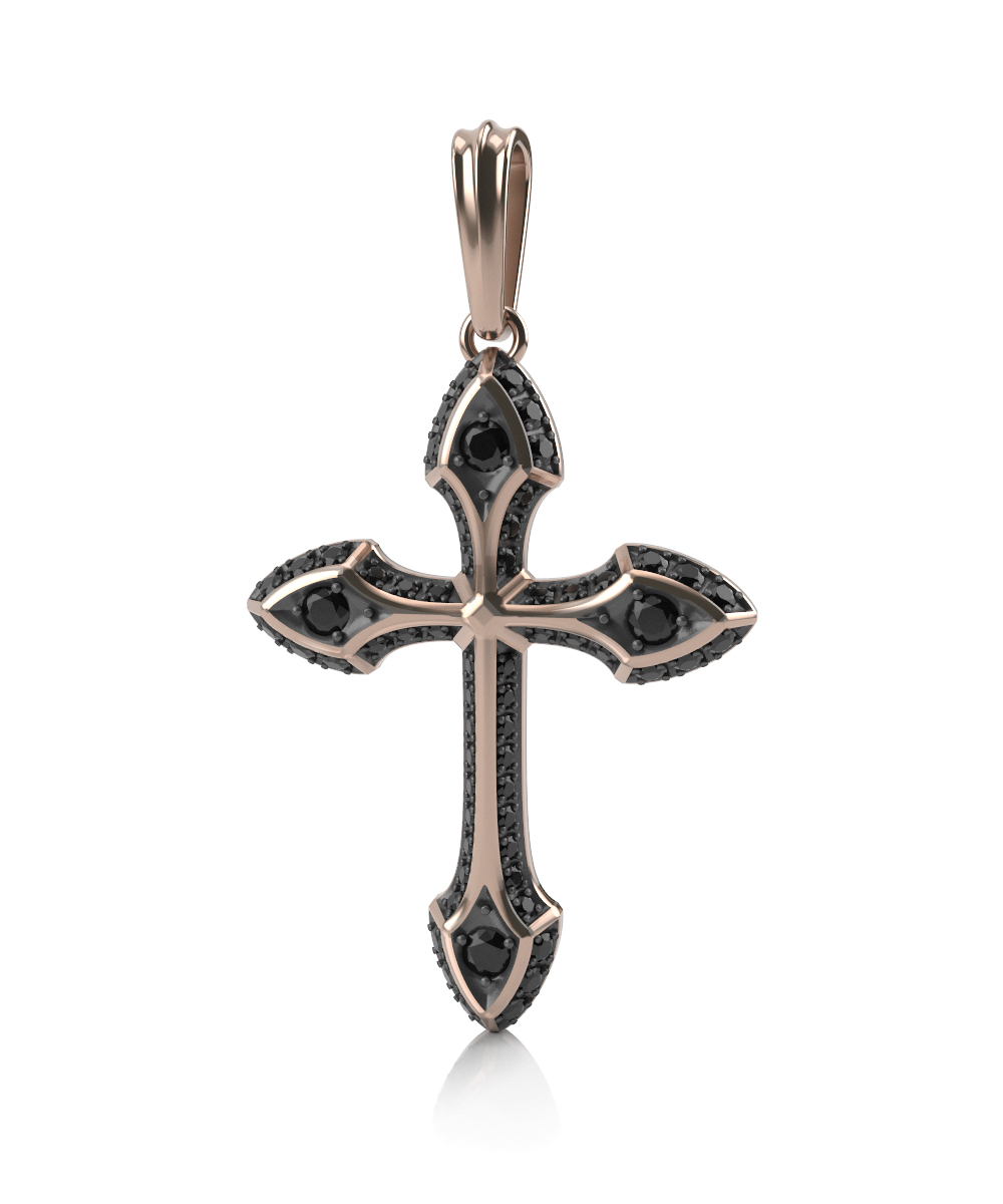Крест из красного золота с черными бриллиантами
