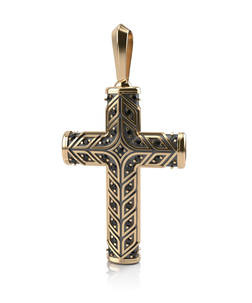 Крест из желтого золота с черными бриллиантами