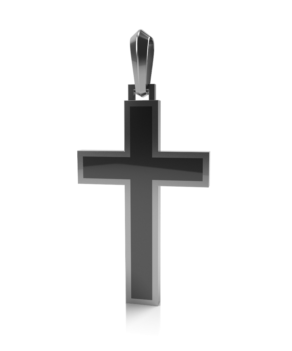 Стильная подвеска-крест, выполненная из белого золота 585 пробы в сочетании с черной керамикой.