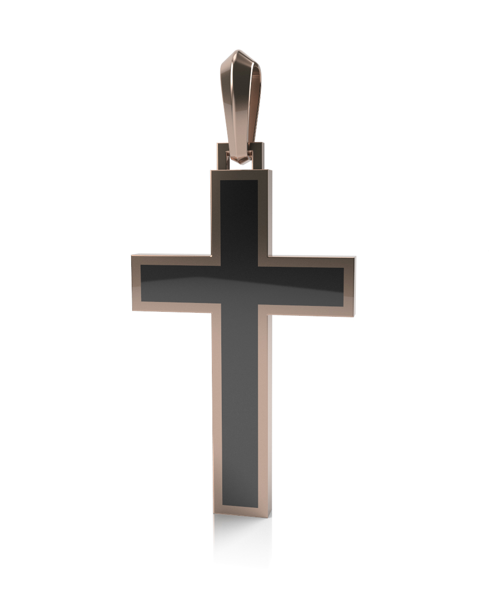Стильная подвеска-крест, выполненная из красного золота 585 пробы в сочетании с черной керамикой.