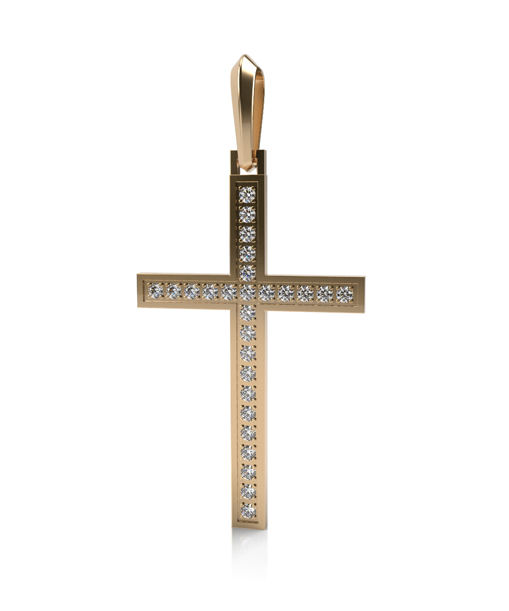 Крест из желтого золота с фианитами