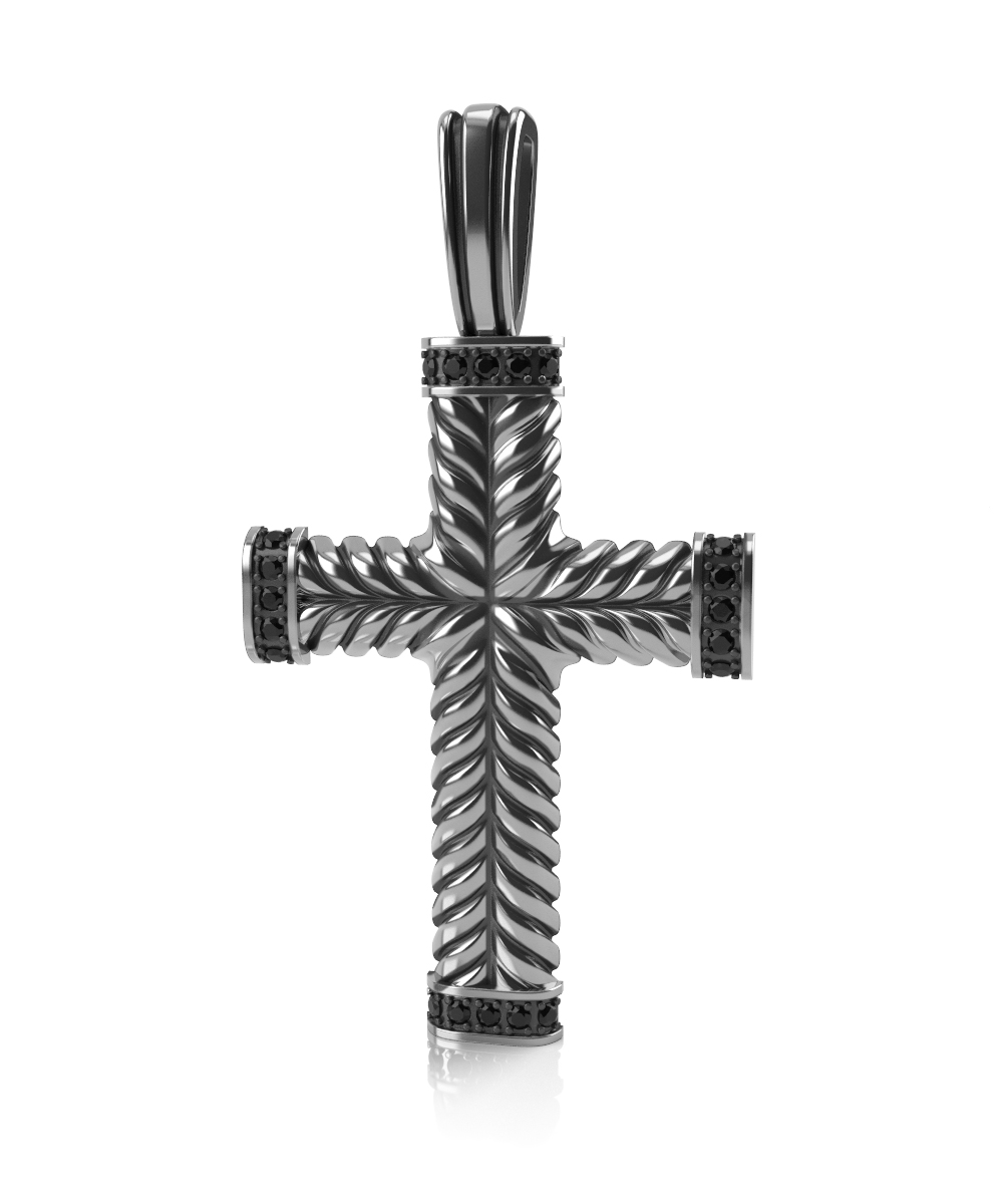 Крест из серебра с черными фианитами