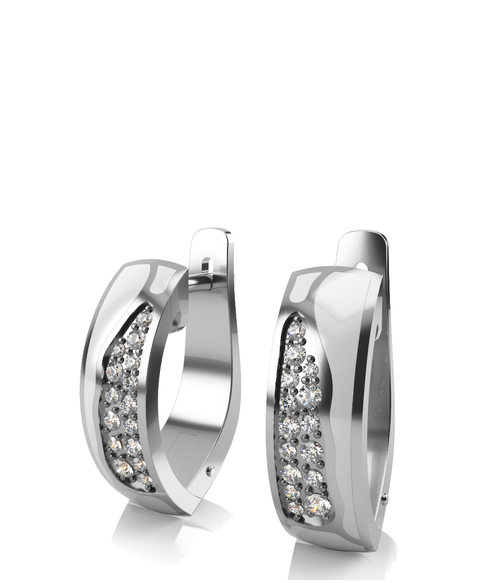 Стильные серьги из серебра 925 пробы. Изделие выполнено в сочетании с белой керамикой и украшено россыпью фианитов.