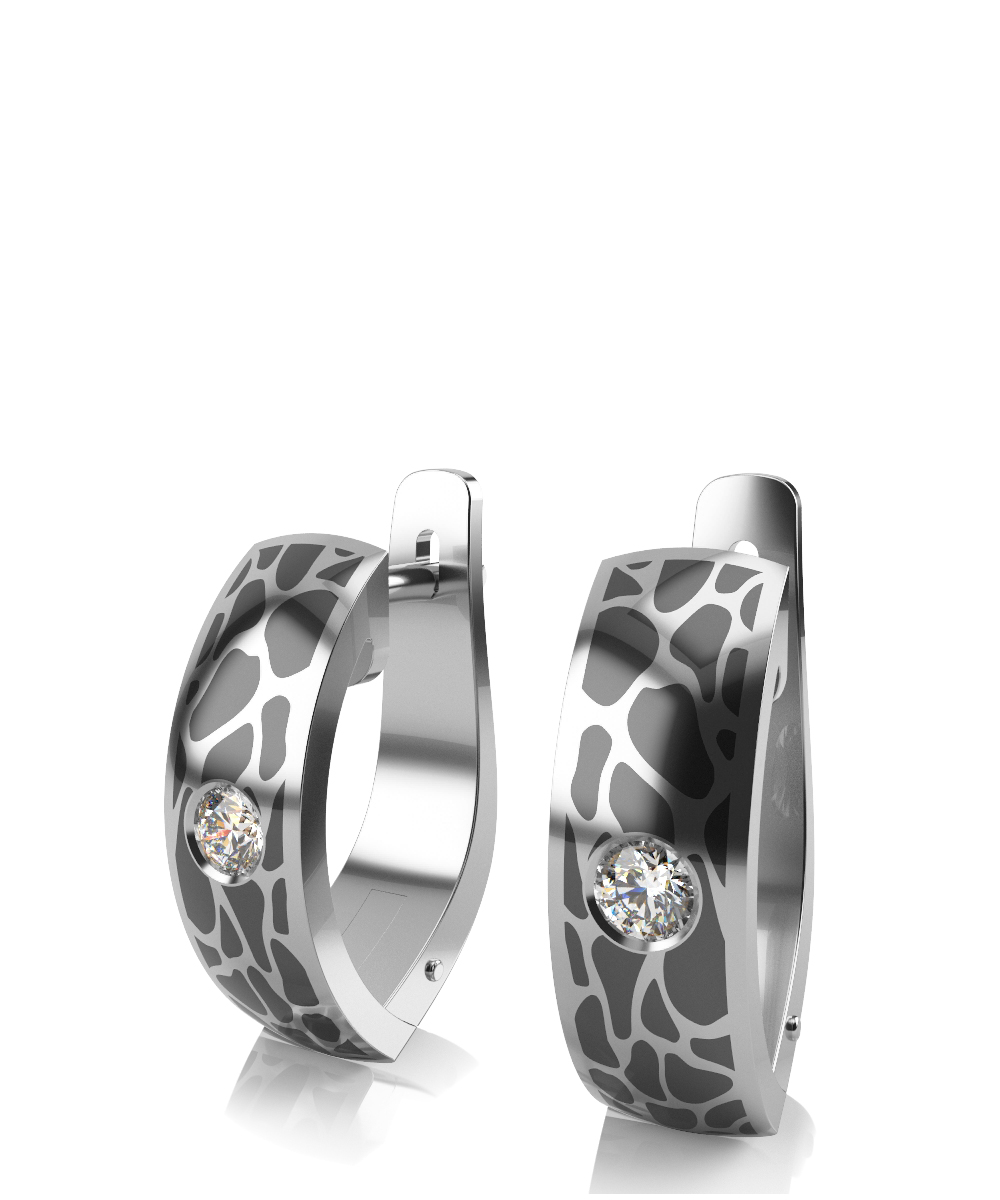 Стильные серьги из серебра 925 пробы. Изделие выполнено в сочетании с черной керамикой и украшено фианитами.