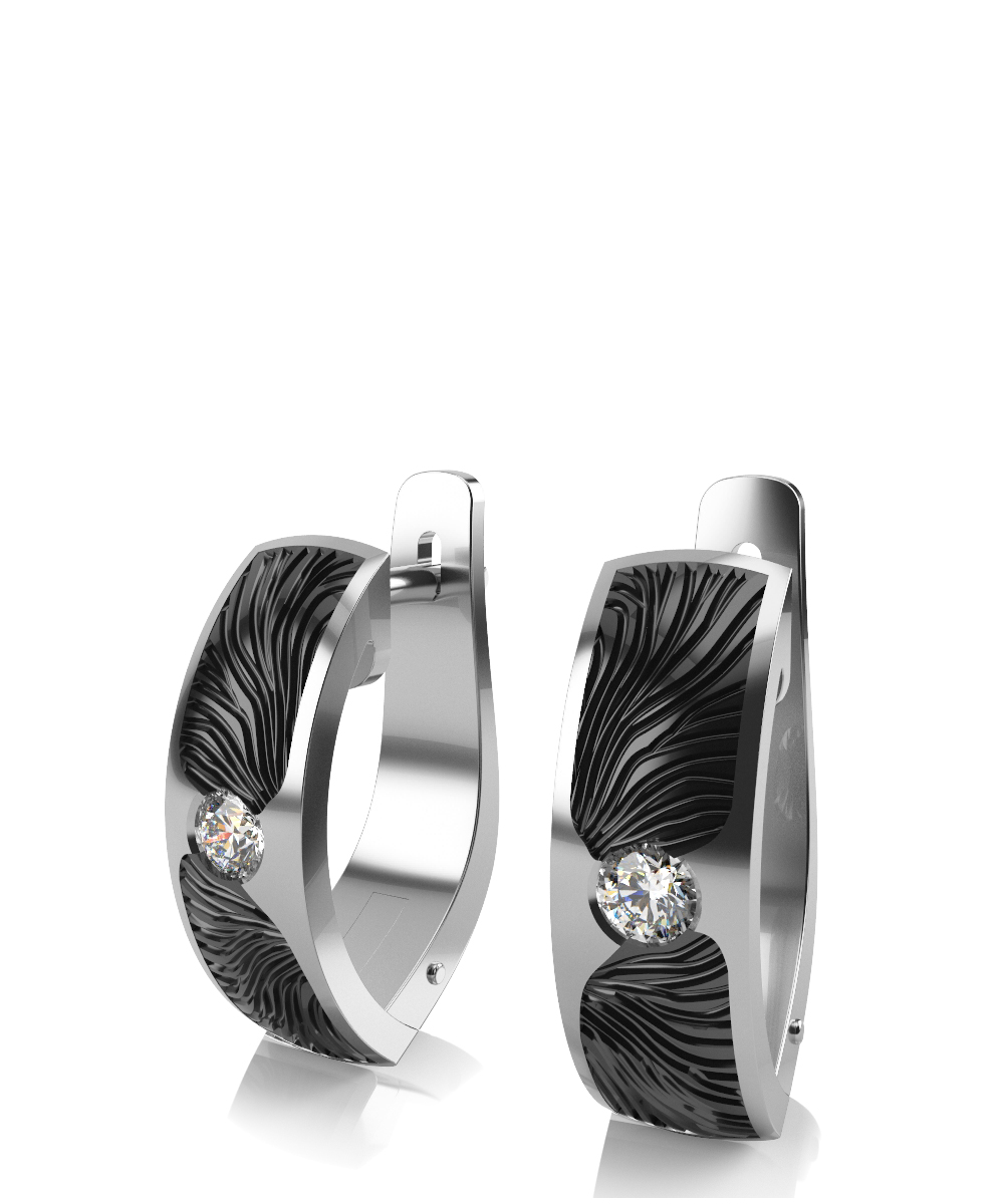 Стильные серьги из серебра 925 пробы. Изделие выполнено в сочетании с черной керамикой и украшено фианитами.