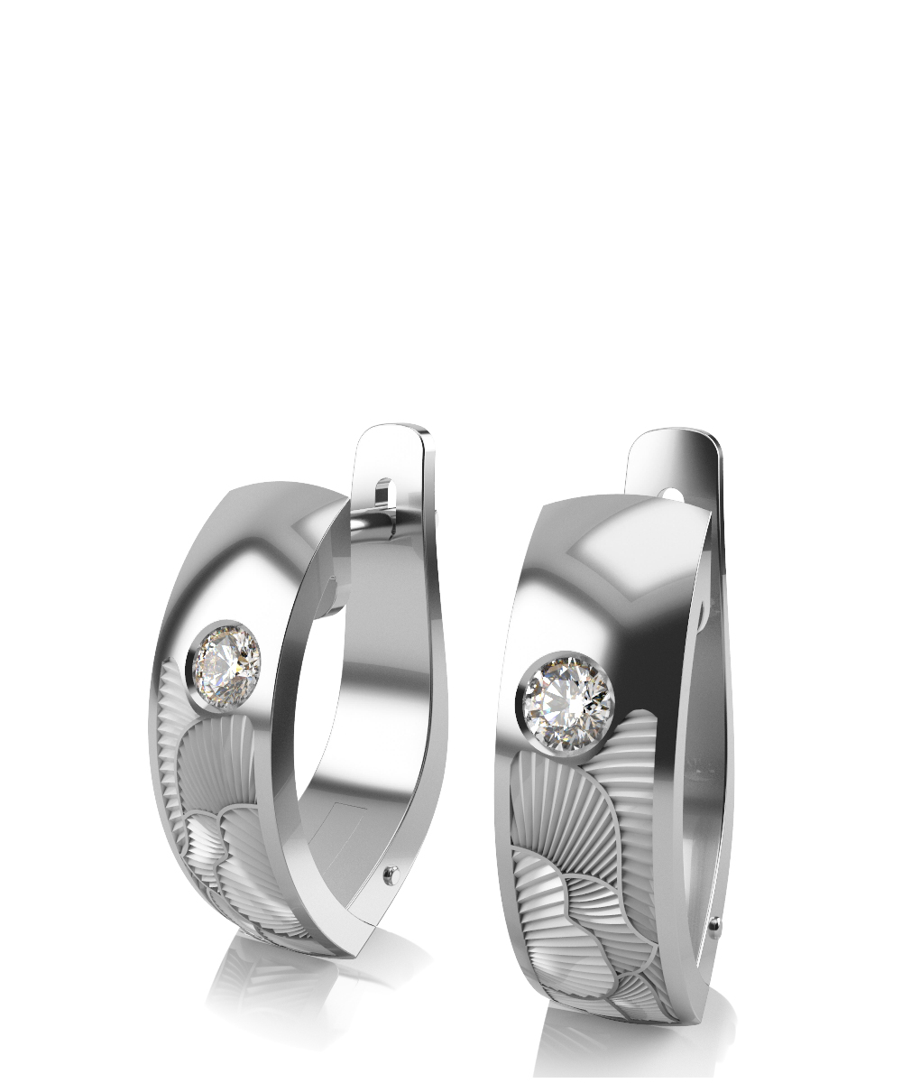 Стильные серьги из серебра 925 пробы. Изделие выполнено в сочетании с белой керамикой и украшено фианитами.