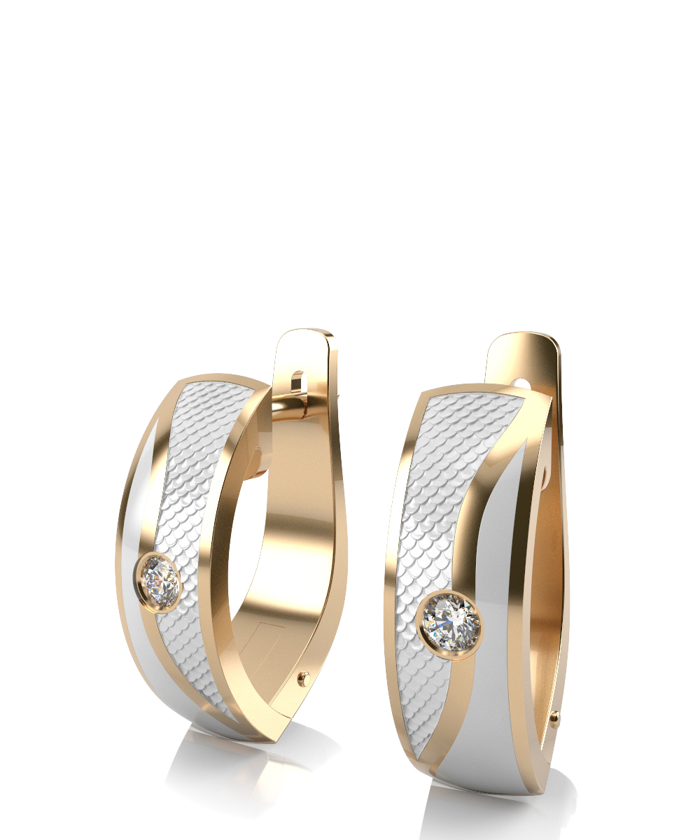 Серьги из желтого золота с белой керамикой и бриллиантами