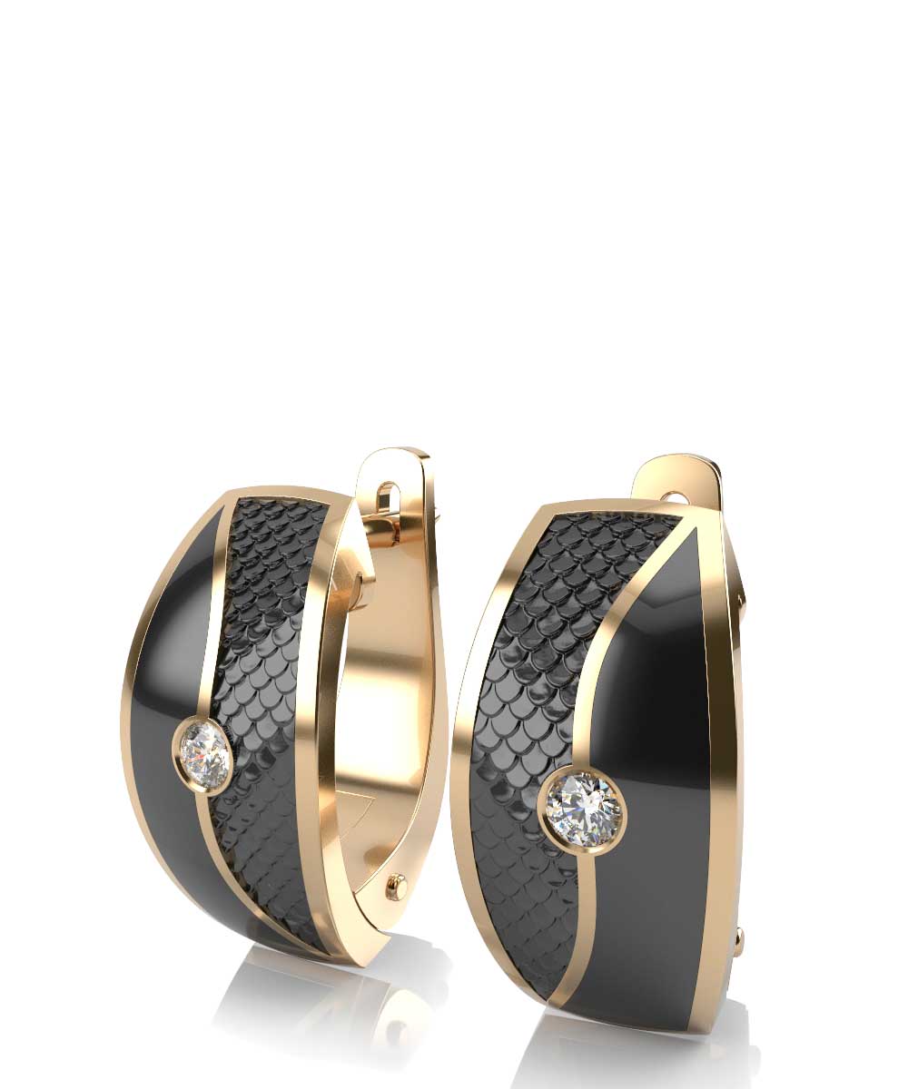 Серьги из желтого золота с черной керамикой и бриллиантами
