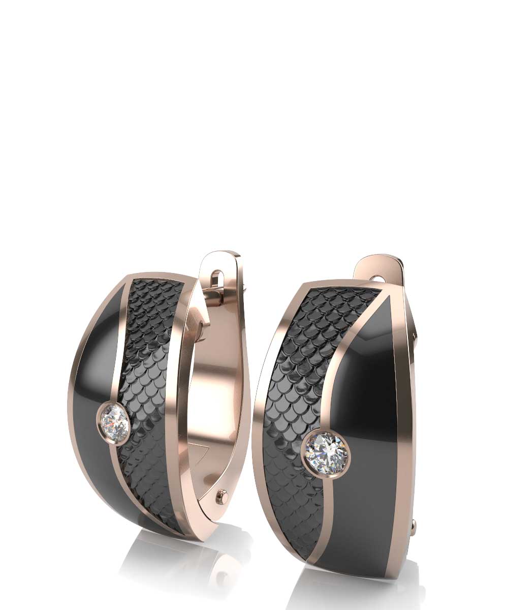 Серьги из красного золота с черной керамикой и бриллиантами