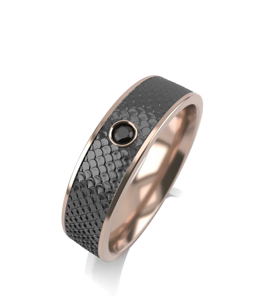 Кольцо из красного золота с черной керамикой и черным бриллиантом