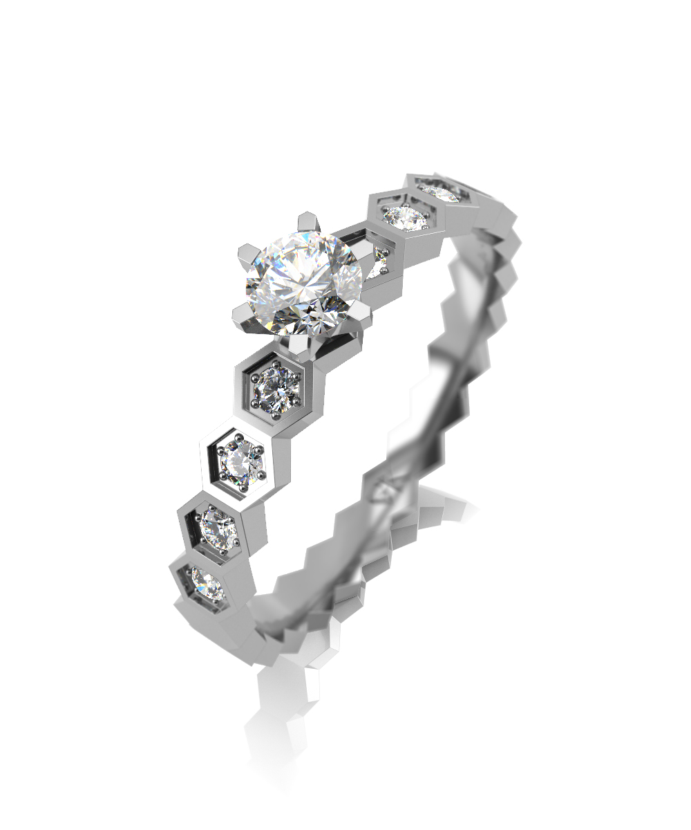 Помолвочное кольцо из белого золота с выращенными бриллиантами