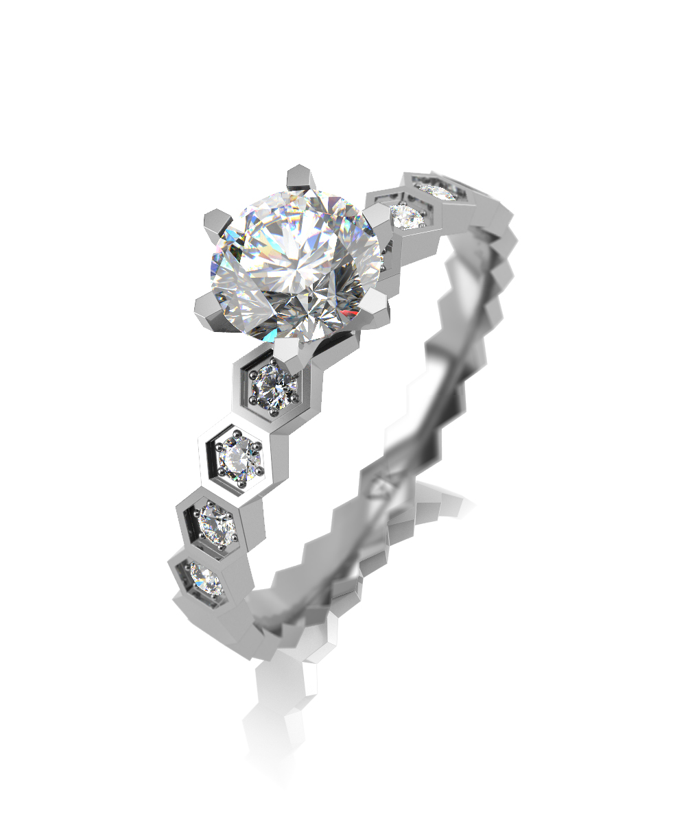 Помолвочное кольцо из белого золота с выращенными бриллиантами