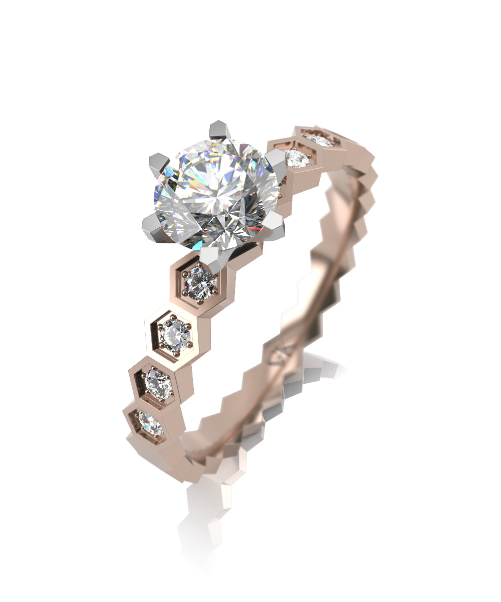 Помолвочное кольцо из комбинированного золота с выращенными бриллиантами
