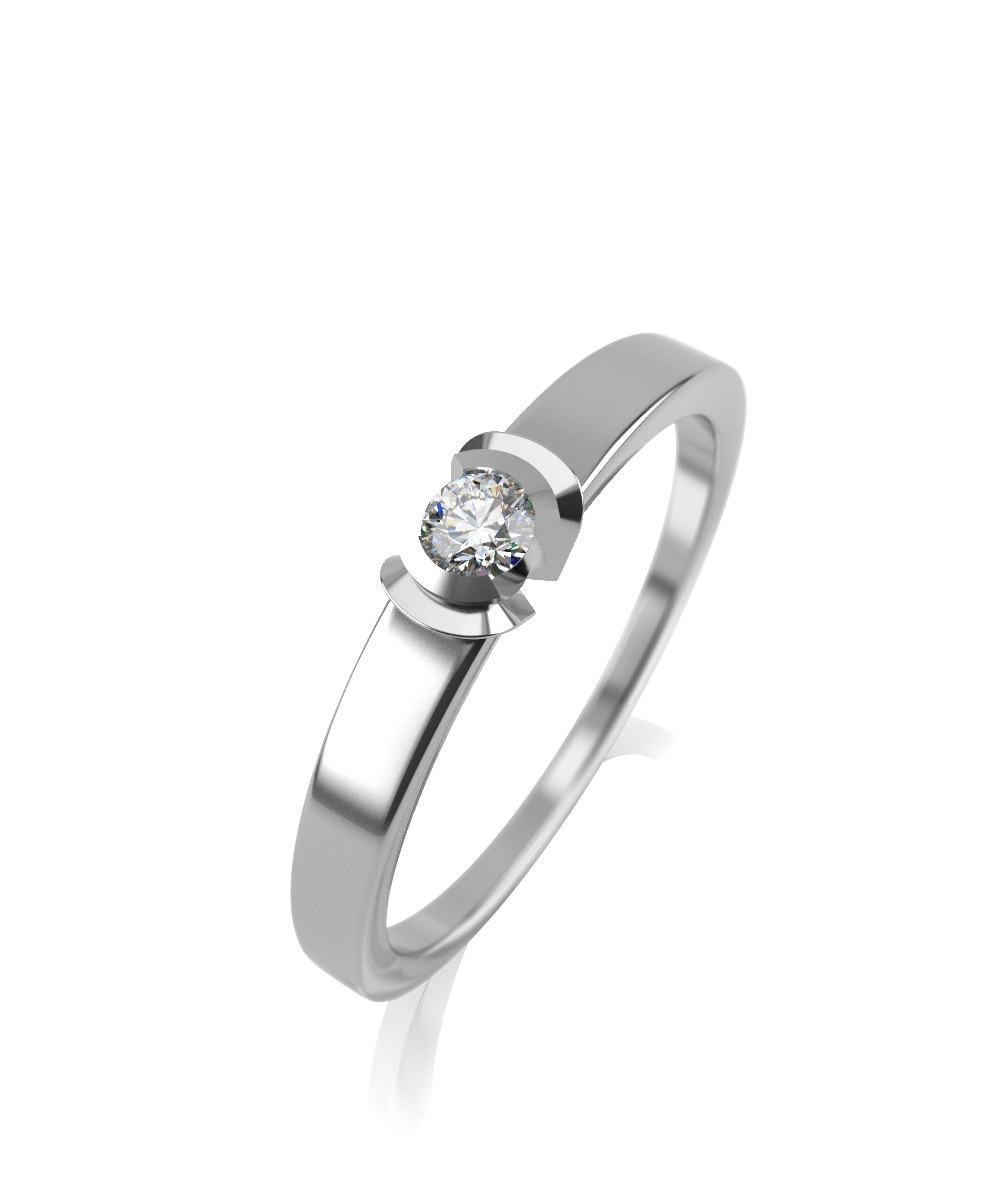 Сочетание гладкой зеркальной поверхности кольца с ярким бриллиантом смотрится очень эффектно.