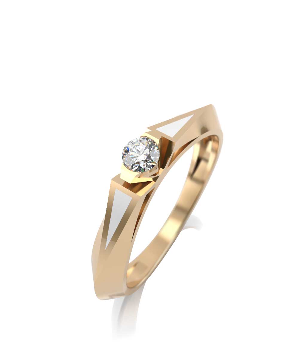 Помолвочное кольцо из желтого золота с керамикой и бриллиантом