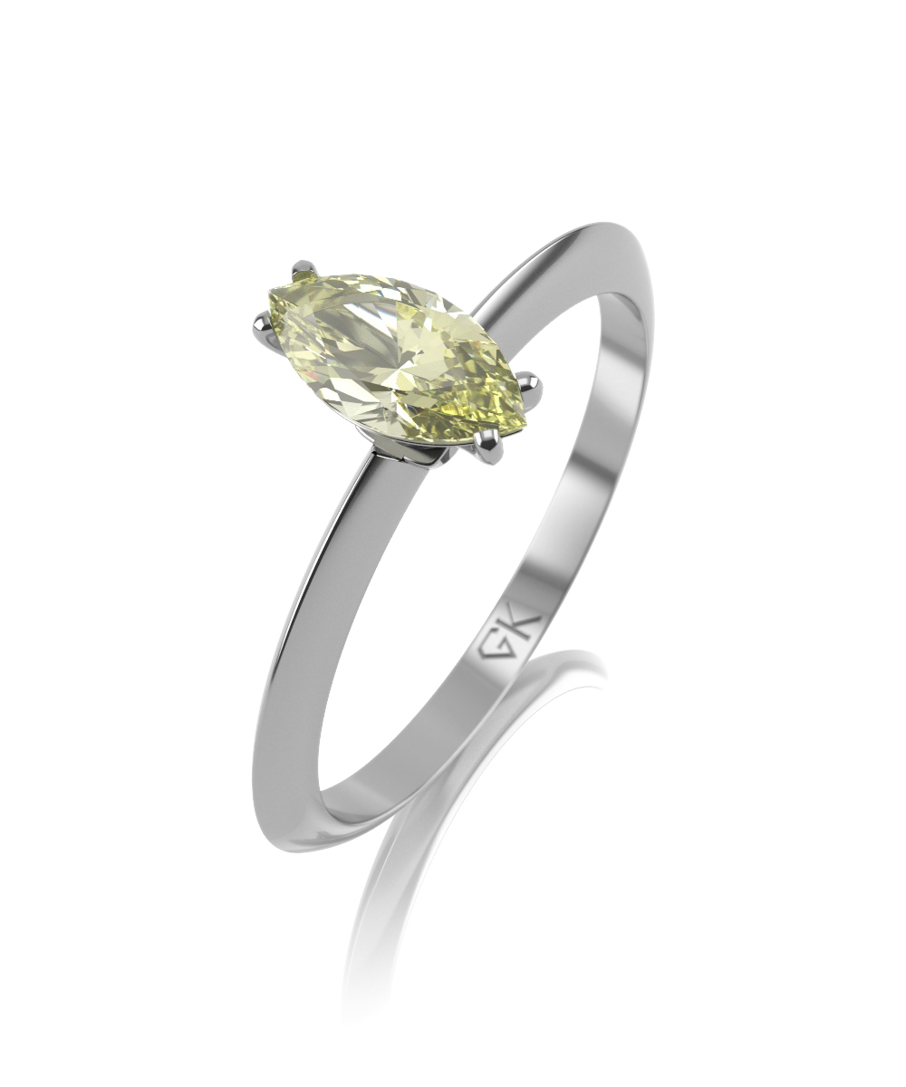 Стильное помолвочное кольцо из белого золота 585 пробы с выращенным бриллиантом.