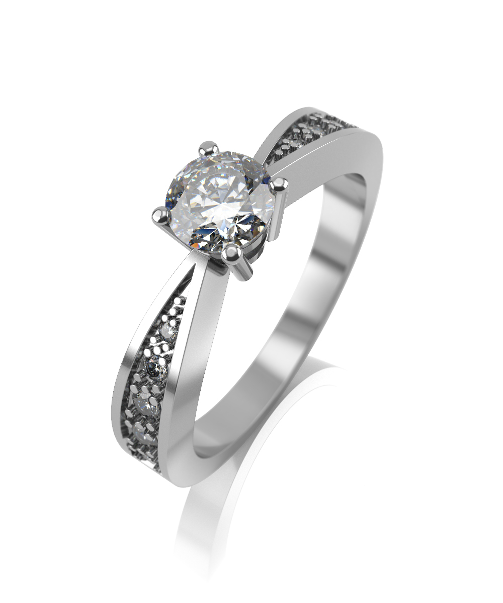 Помолвочное кольцо из белого золота с муассанитами