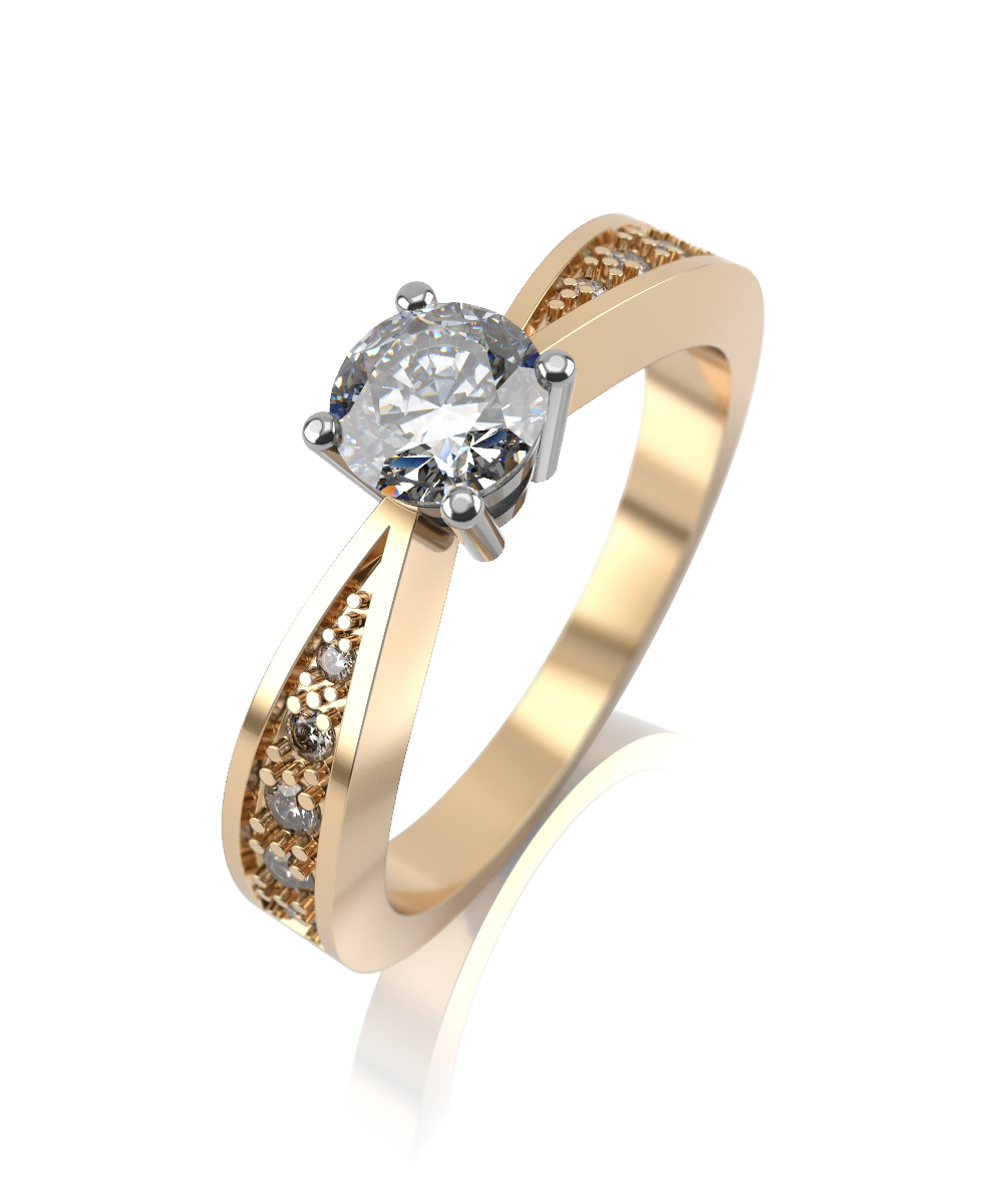 Помолвочное кольцо из комбинированного золота с муассанитами