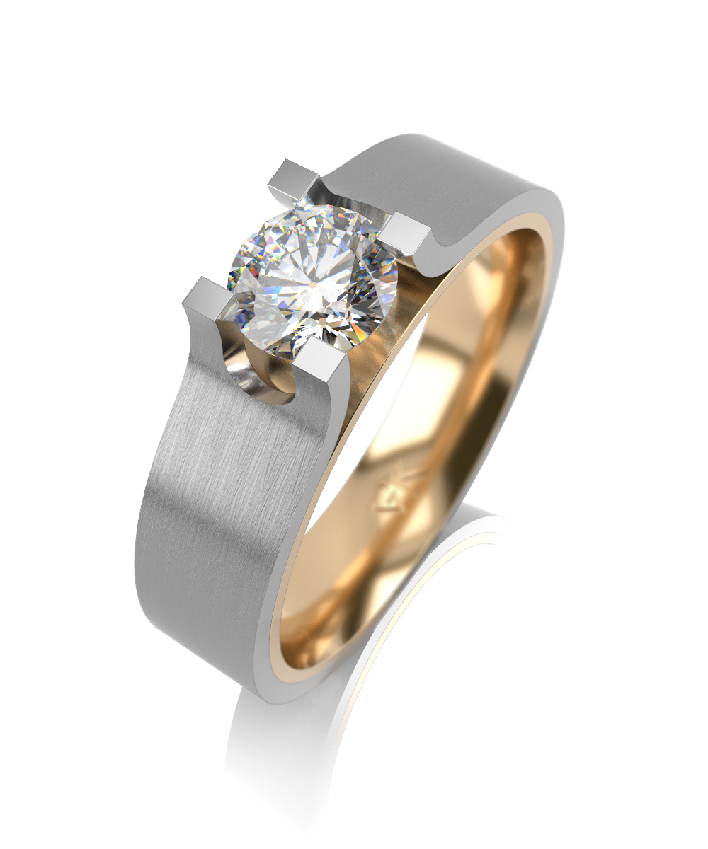 Помолвочное кольцо из комбинированного золота с муассанитом