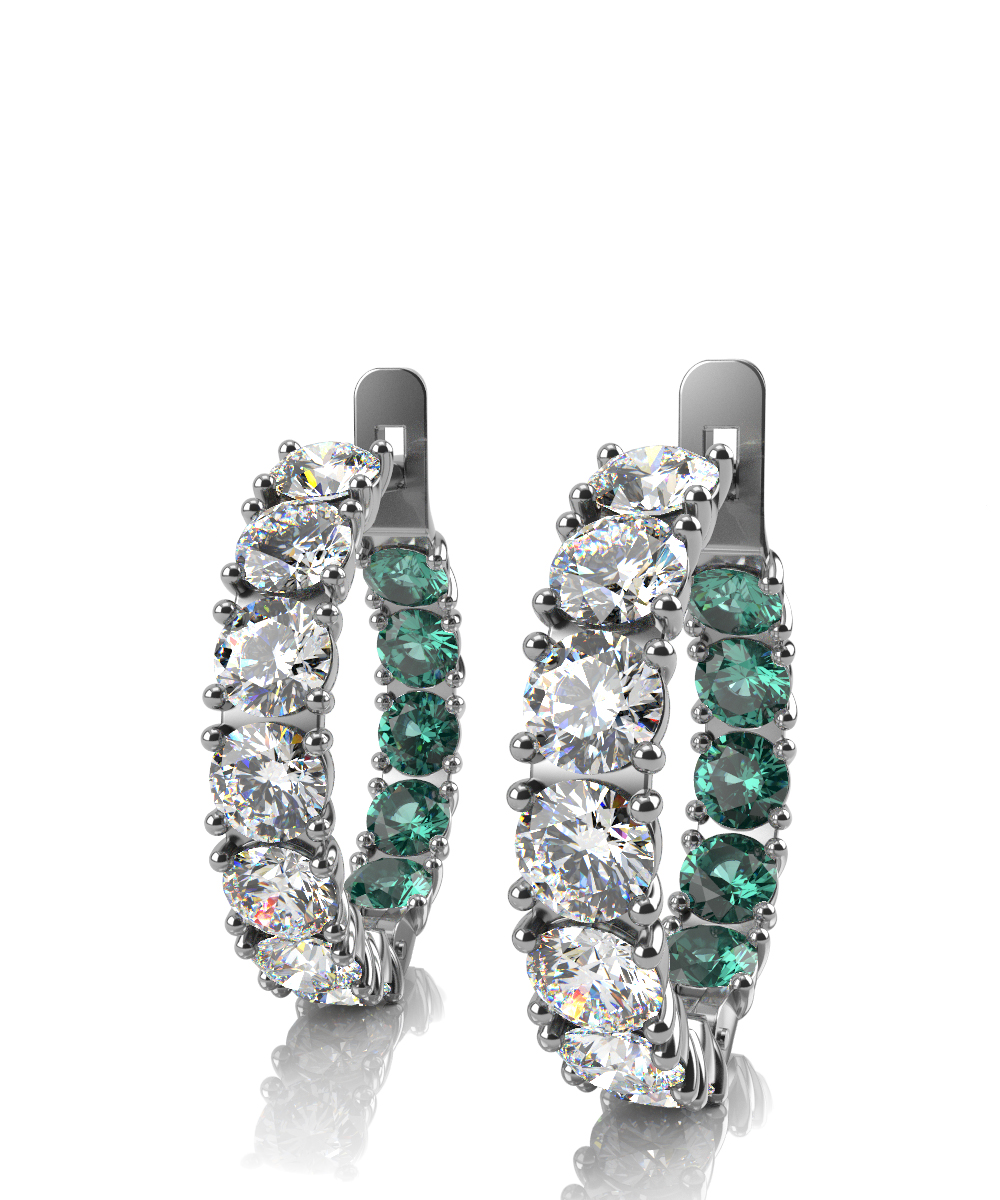 Серьги из белого золота с муассанитами и гидротермальными изумрудами