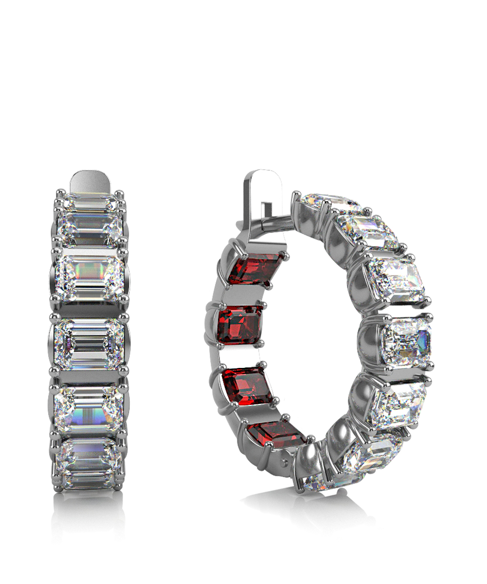 Серьги-конго из белого золота 585 пробы с фианитами.
