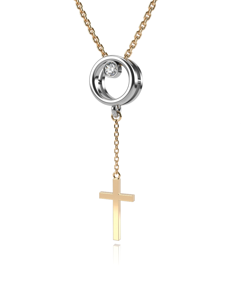 Колье из комбинированного золота с фианитом