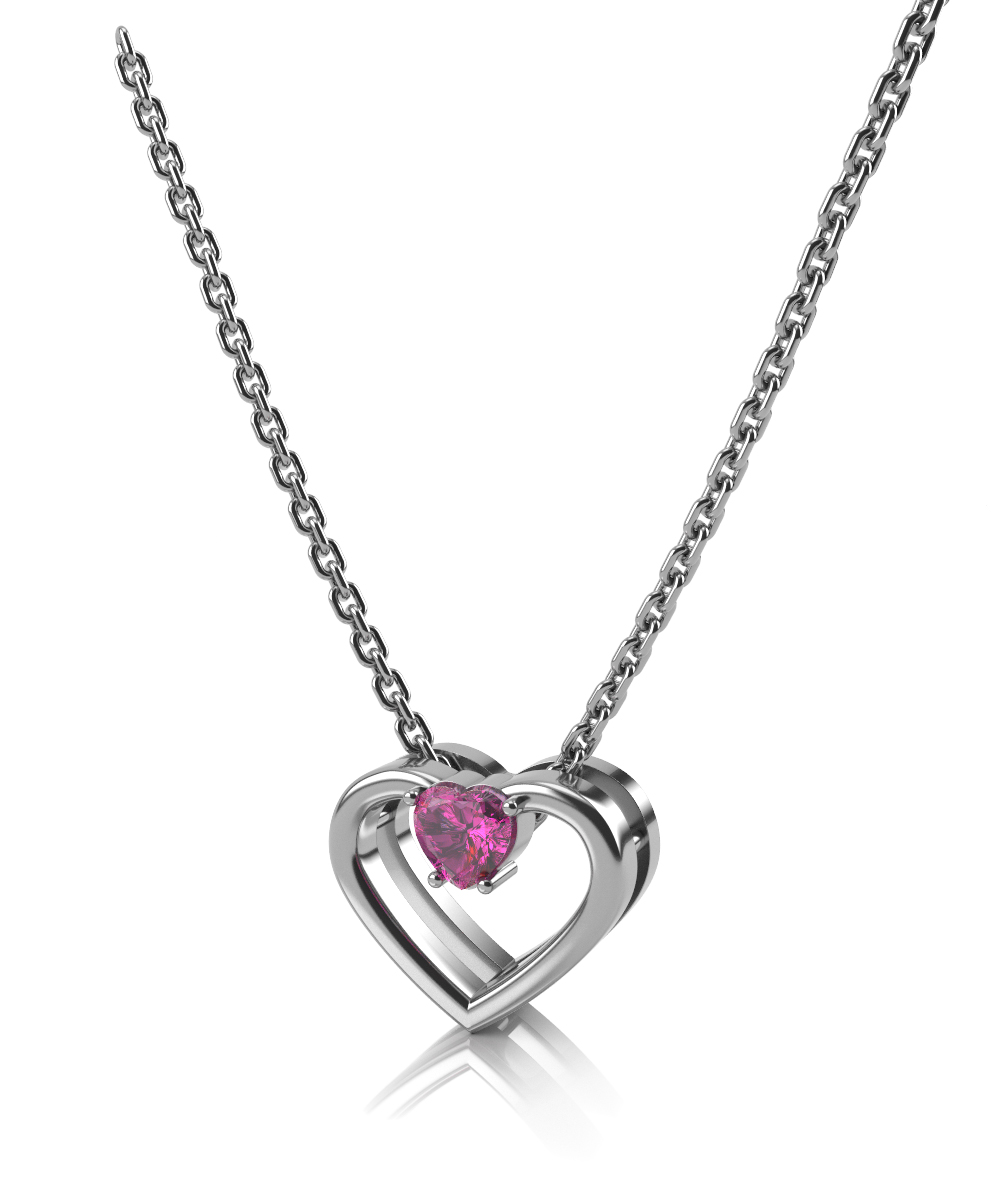Стильное колье "Сердце" из белого золота 585 пробы, украшенная фианитом.