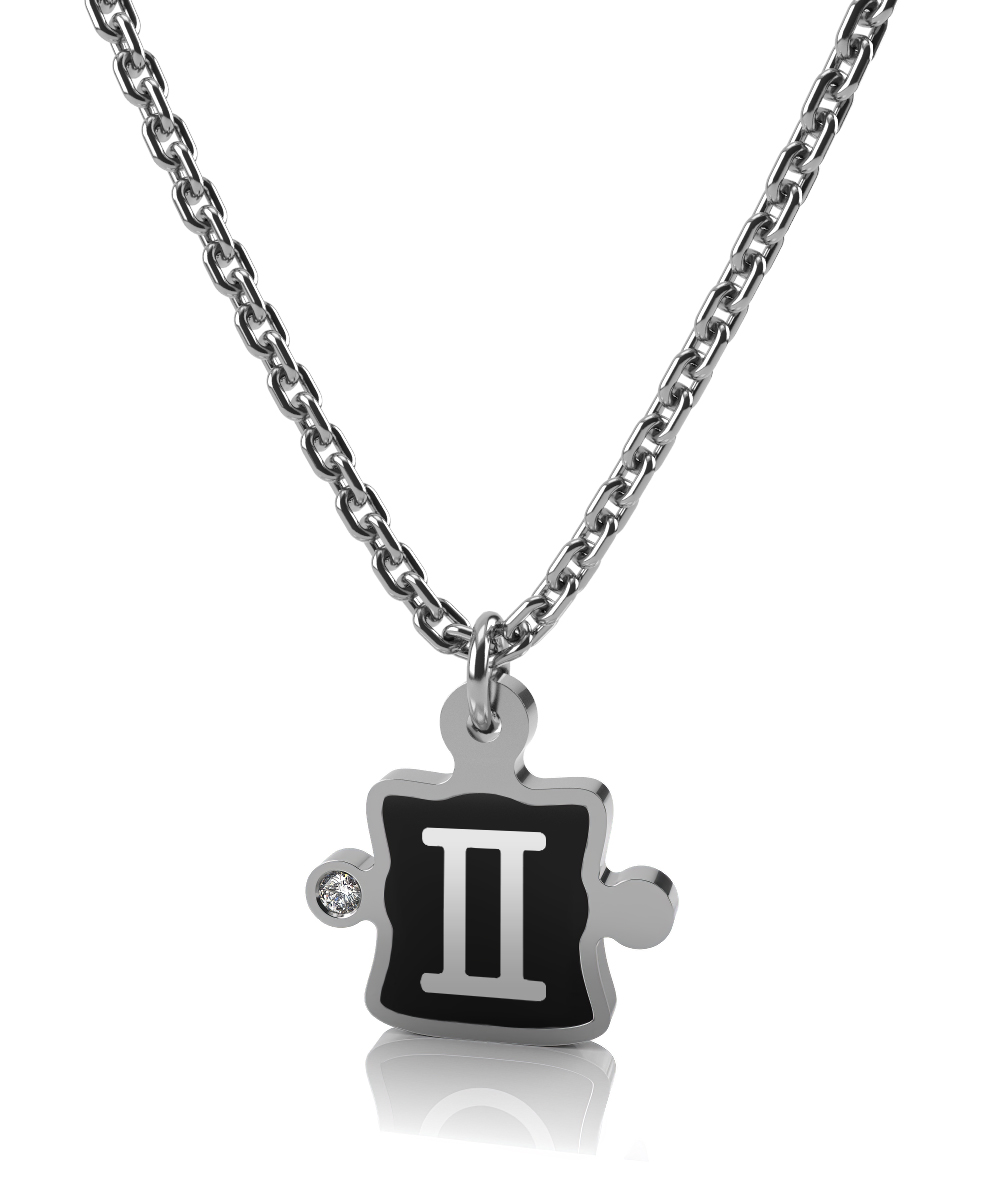 Колье "Близнецы" из серебра с керамикой и фианитом