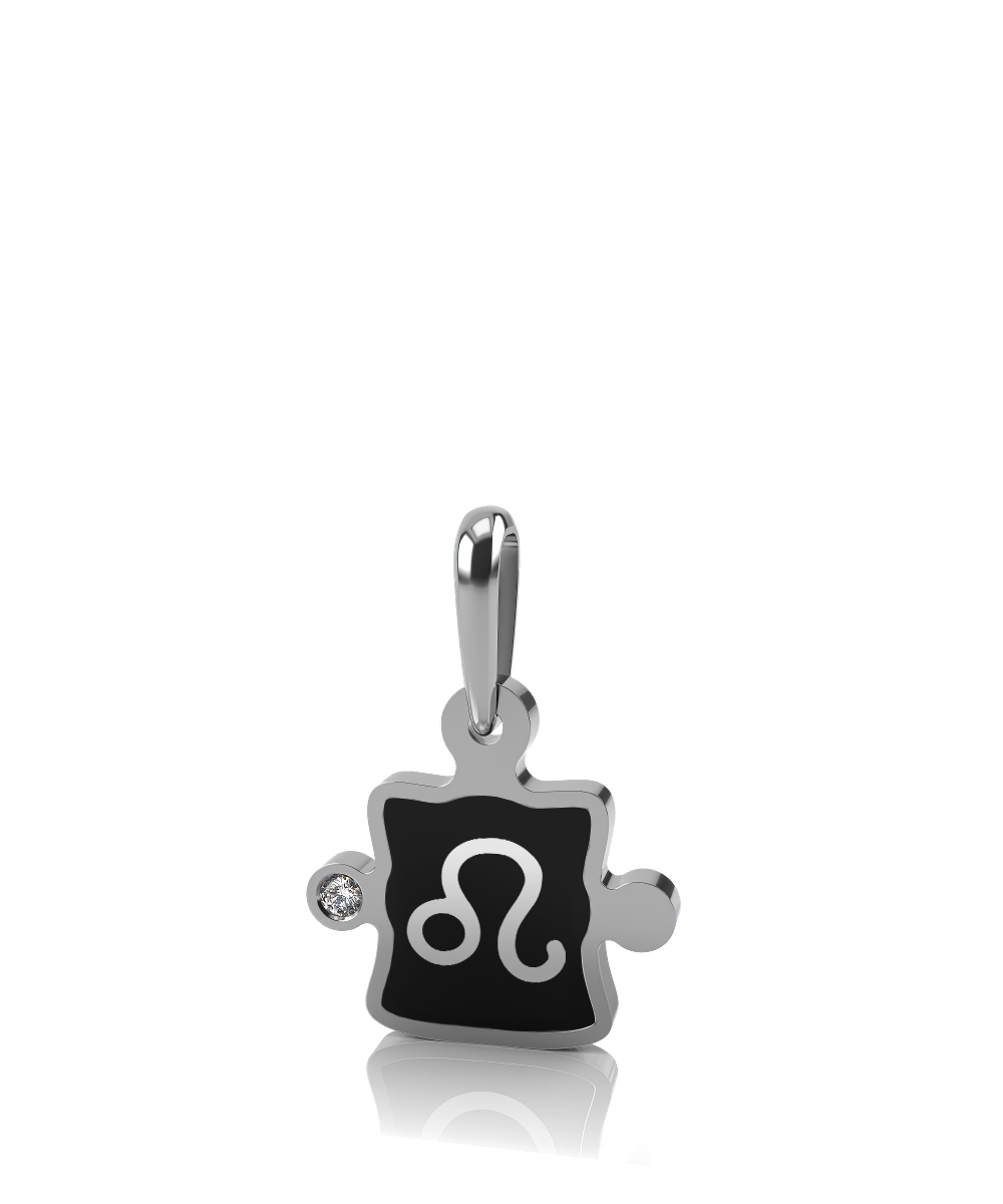 Подвеска "Лев" из белого золота с керамикой и фианитом