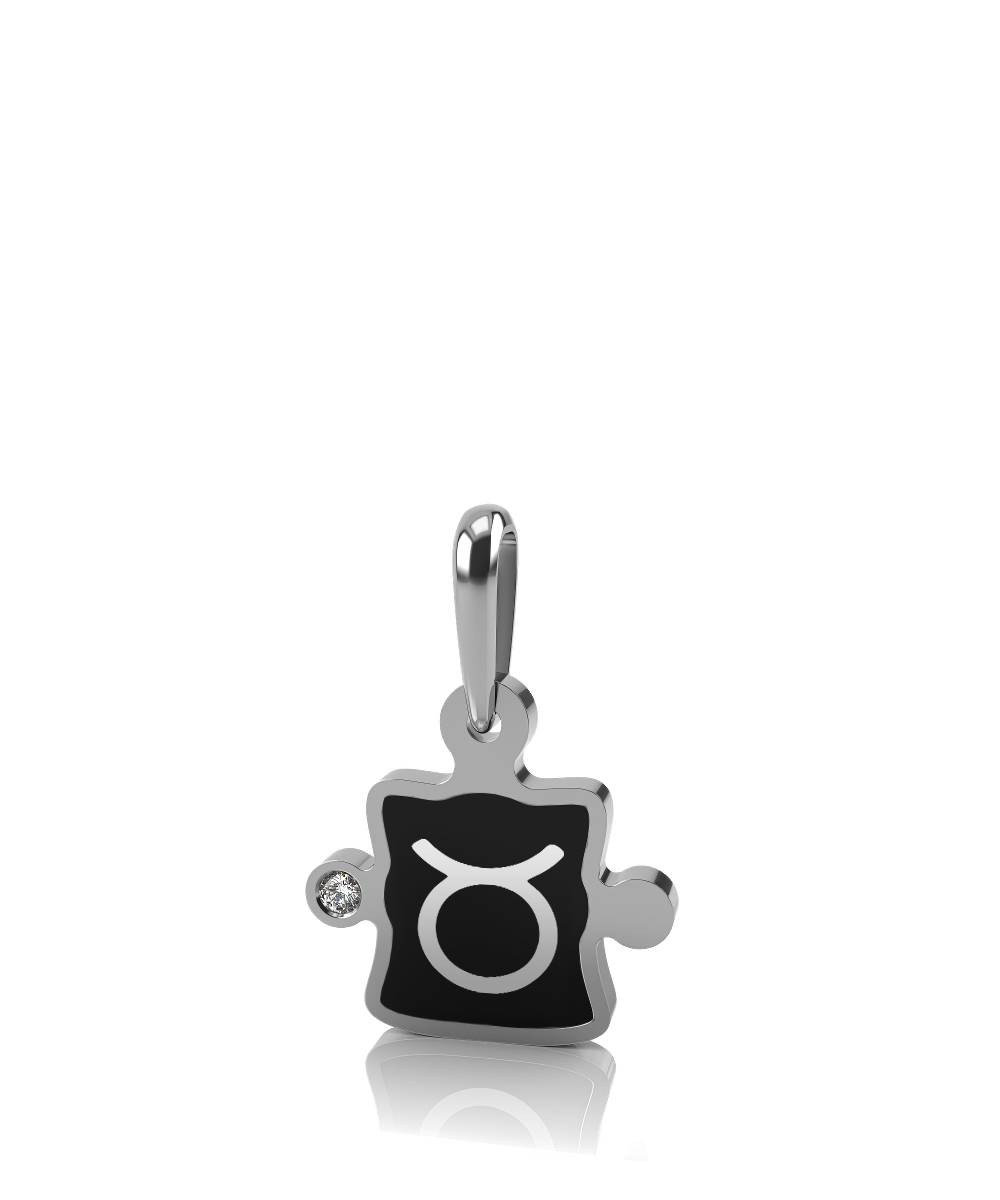 Подвеска "Телец" из белого золота с керамикой и фианитом