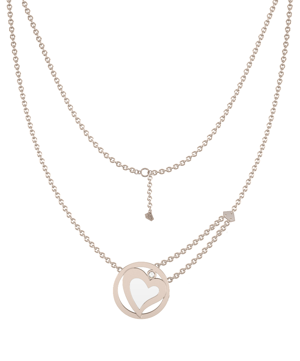 Стильное колье из красного золота 585 пробы, украшенное белой керамикой и бриллиантом.