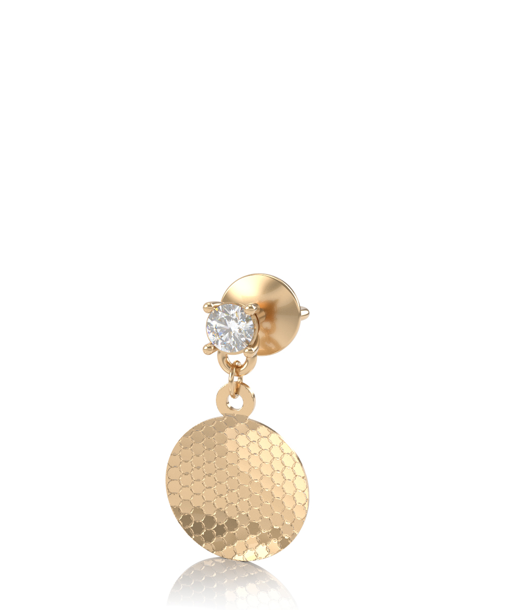 Серьга-пусета из желтого золота 585 пробы, украшенная фианитом