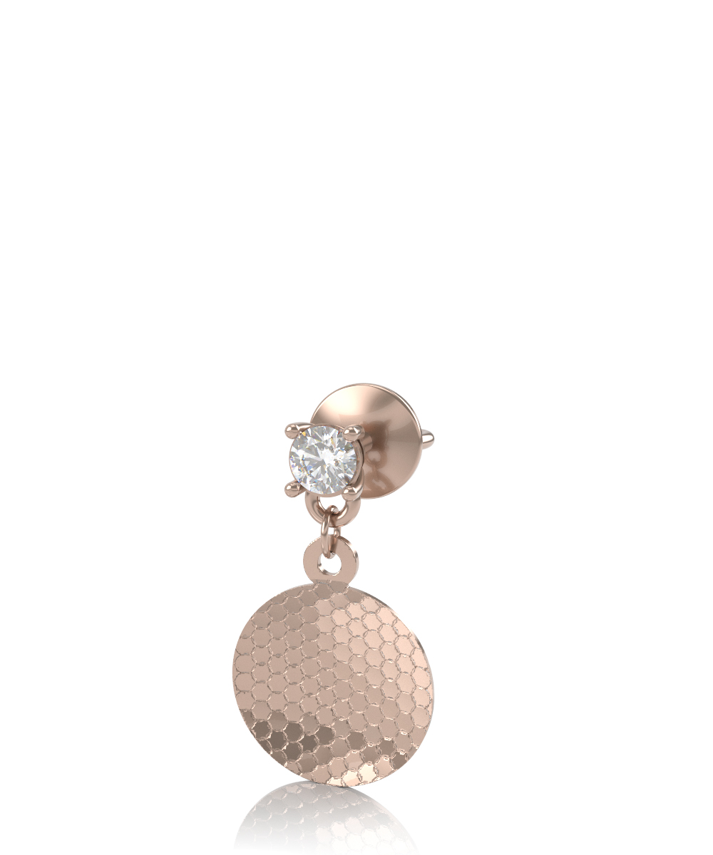Серьга-пусета из красного золота 585 пробы, украшенная фианитом