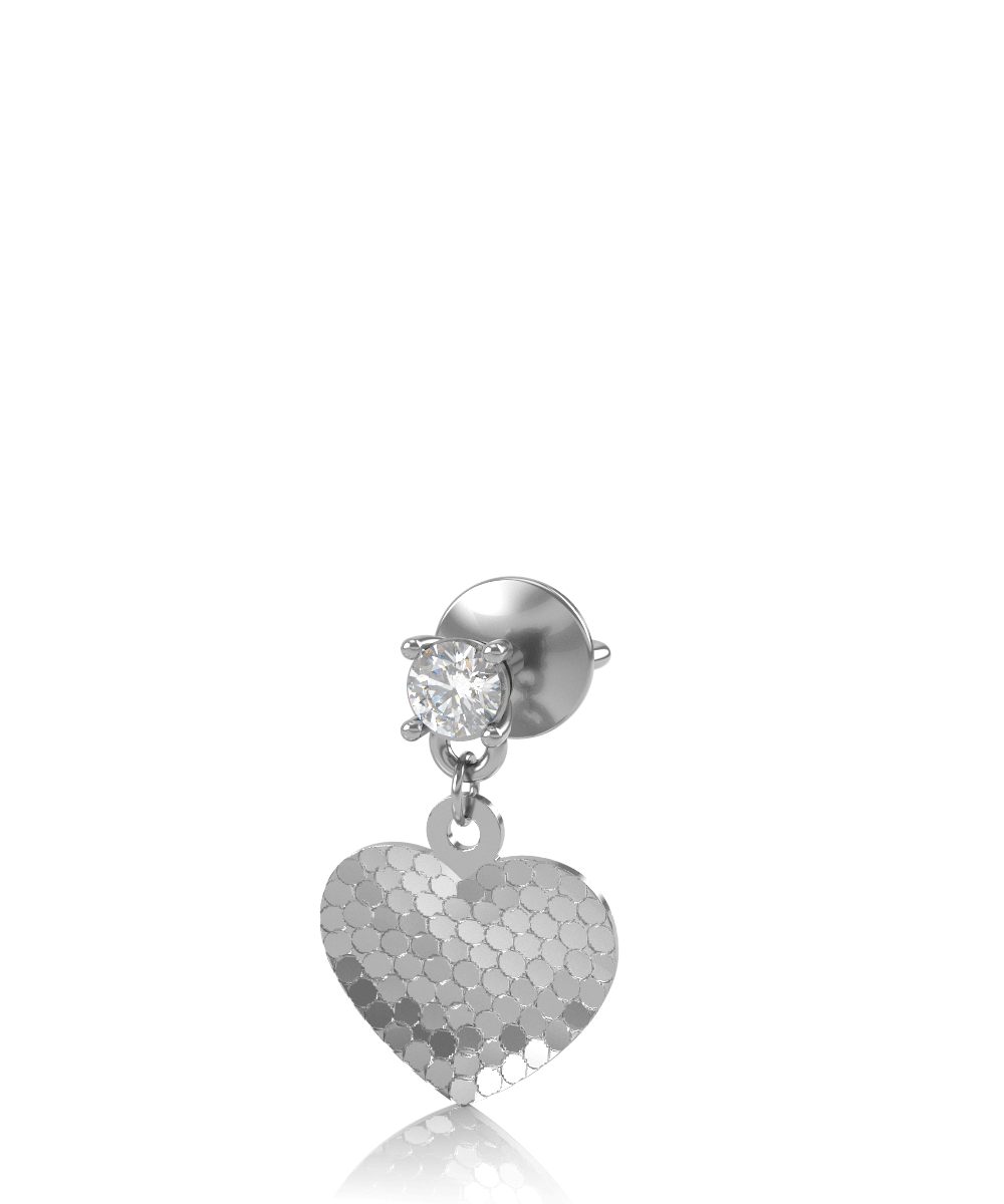 Серьга-пусета из белого золота 585 пробы, украшенная фианитом.