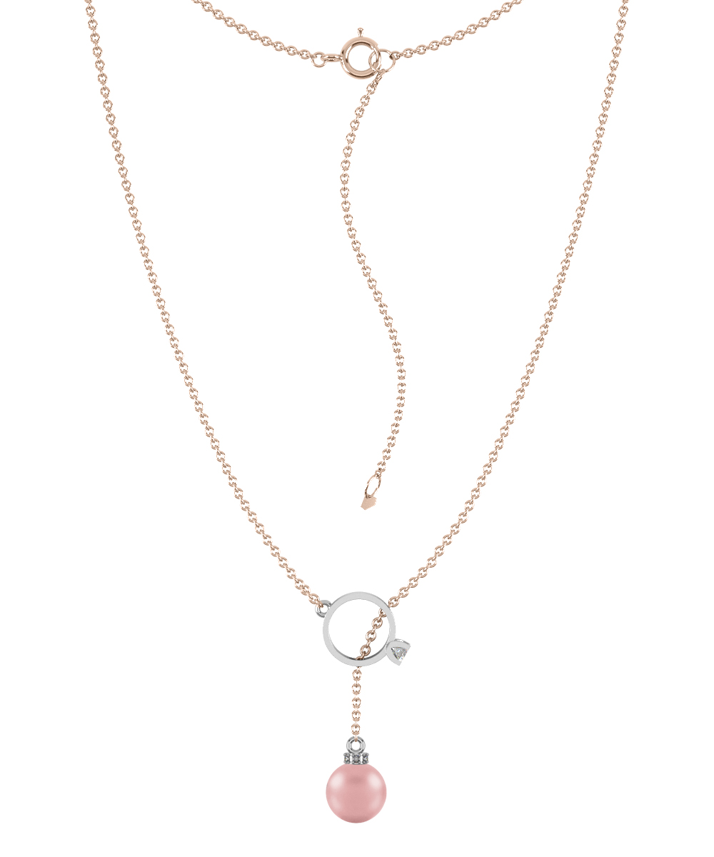 Изящное колье в сочетании красного и белого золота с жемчужиной и бриллиантами - символ изысканной женственности и роскоши.