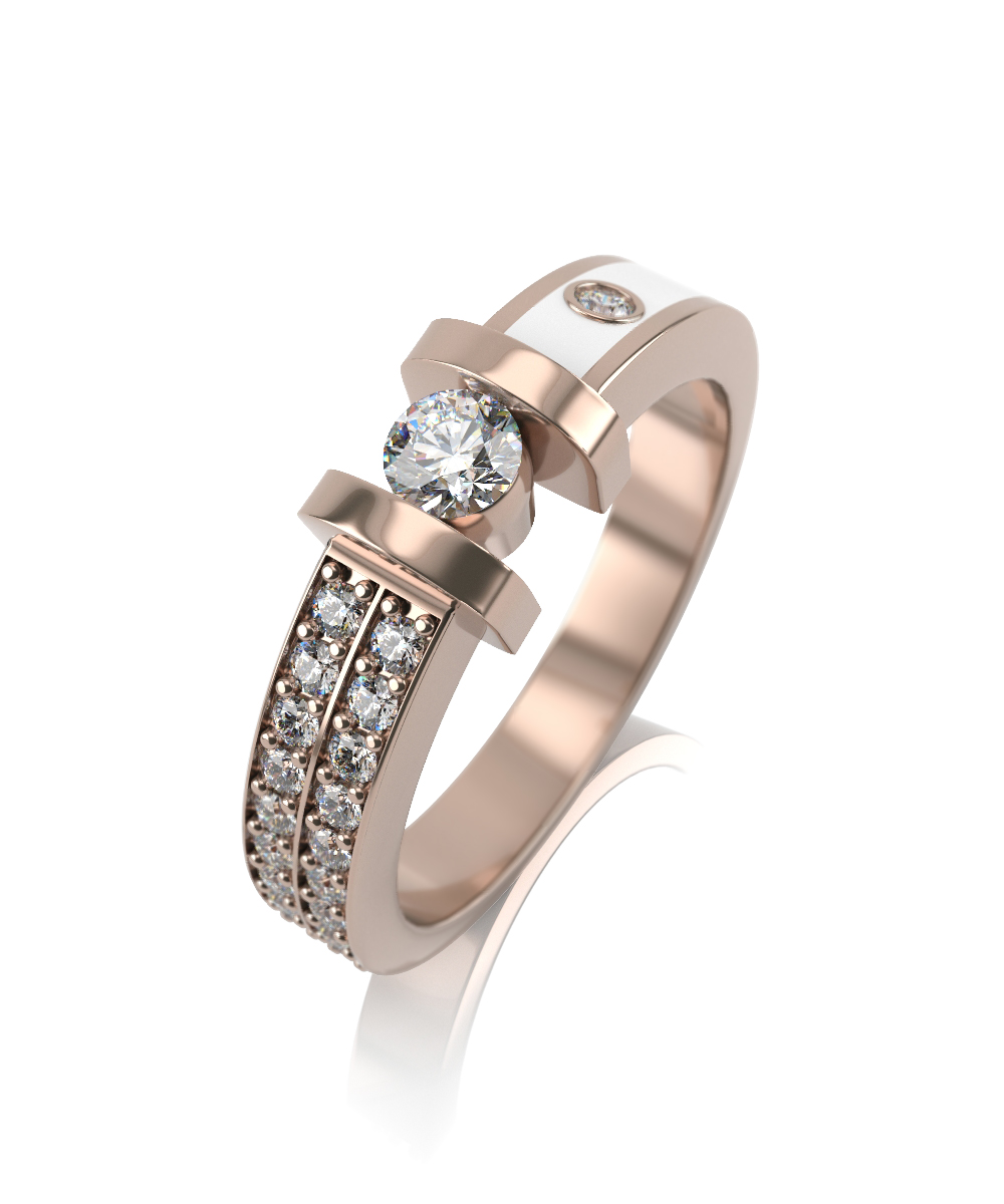 Лаконичной деталью является бриллиант на поверхности белой керамики.