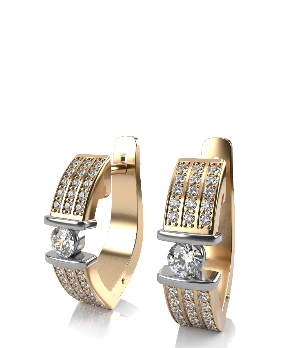 Основа сережек выполнена в желтом золоте, а каст, в котором крепится центральный бриллиант - в белом.
