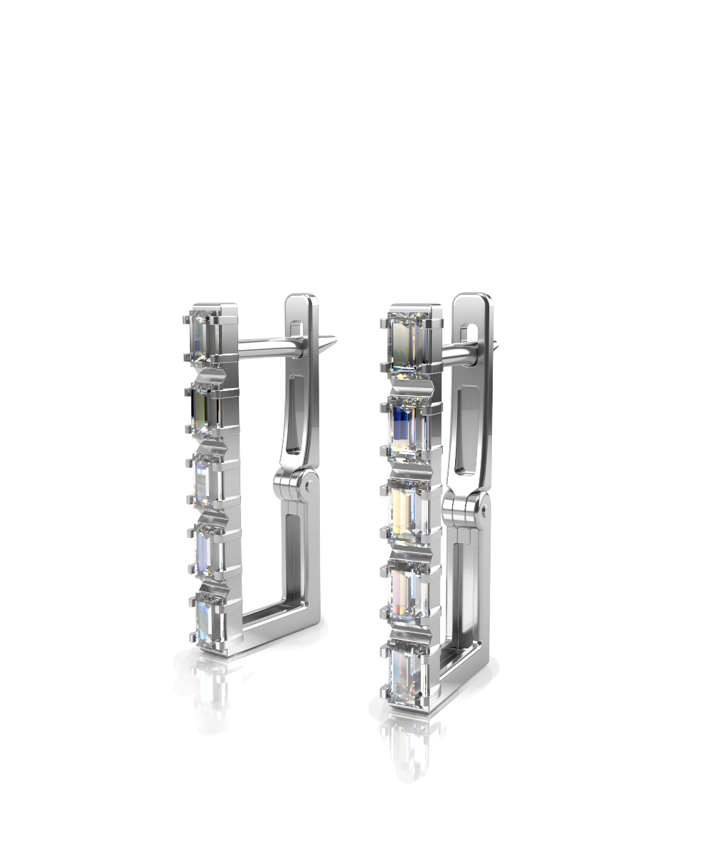 Стильные серьги из белого золота 585 пробы, украшенные бриллиантами.