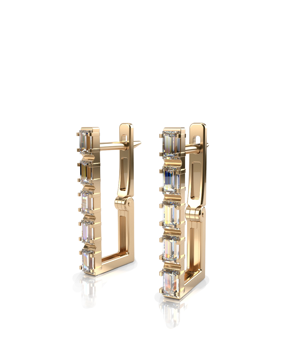 Стильные серьги из желтого золота 585 пробы, украшенные бриллиантами.