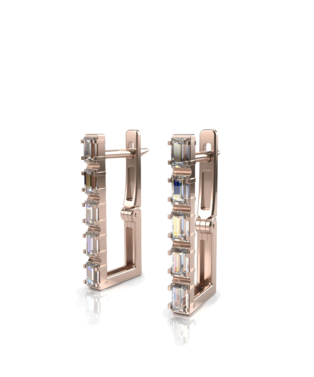 Стильные серьги из красного золота 585 пробы, украшенные бриллиантами.