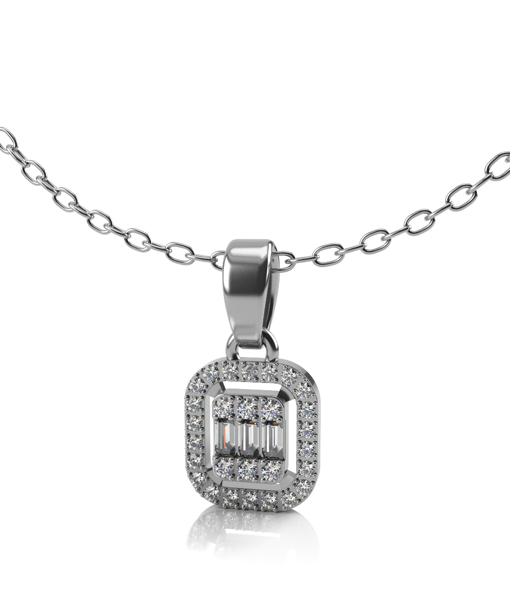Стильное колье из белого золота 585 пробы, украшенное бриллиантами.