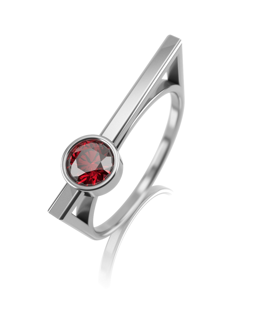 Кольцо из белого золота с гранатом