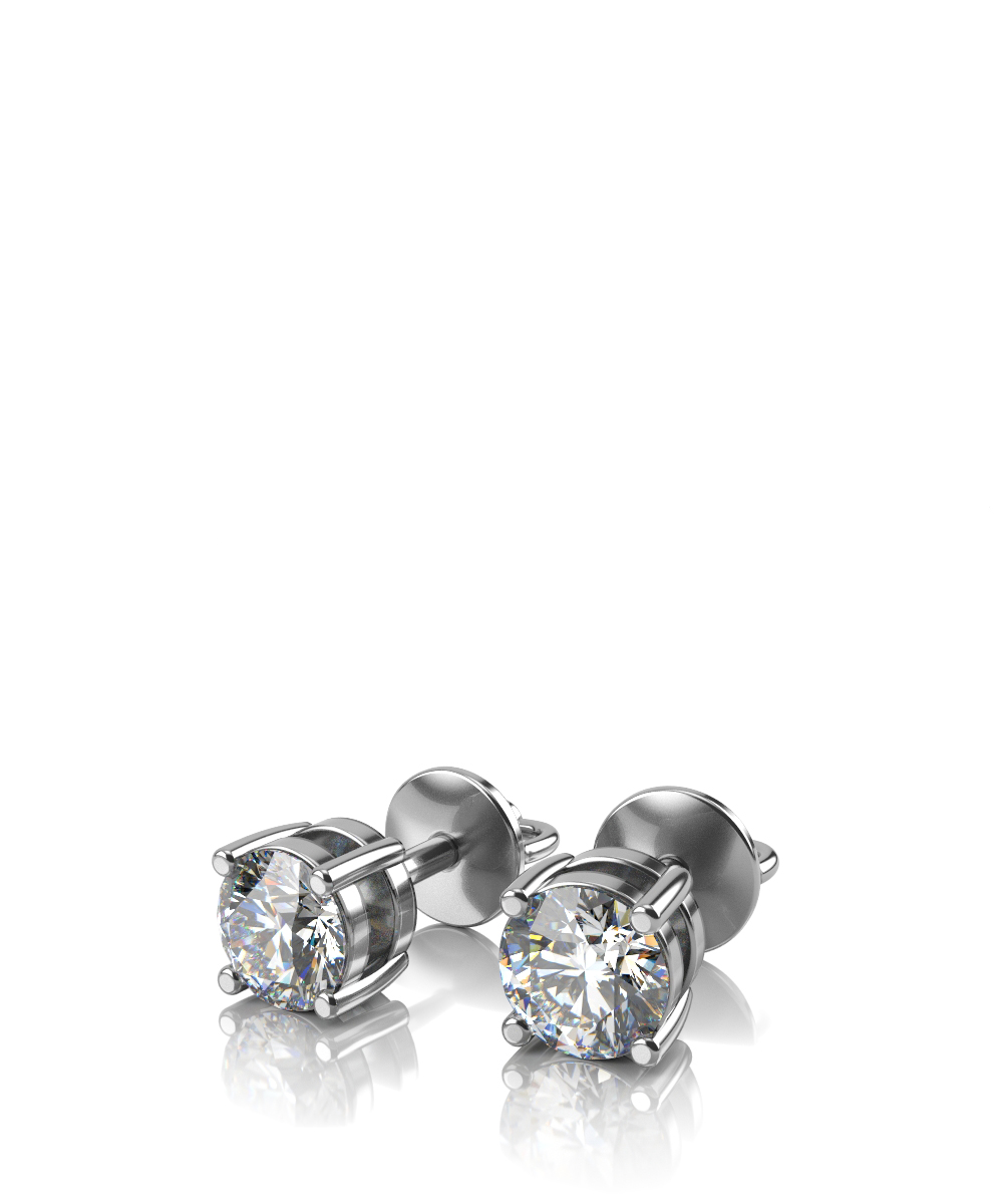 Эксклюзивные серьги-пуссеты с надежным и удобным винтовым замком из белого золота 585 пробы, украшенные бриллиантами.