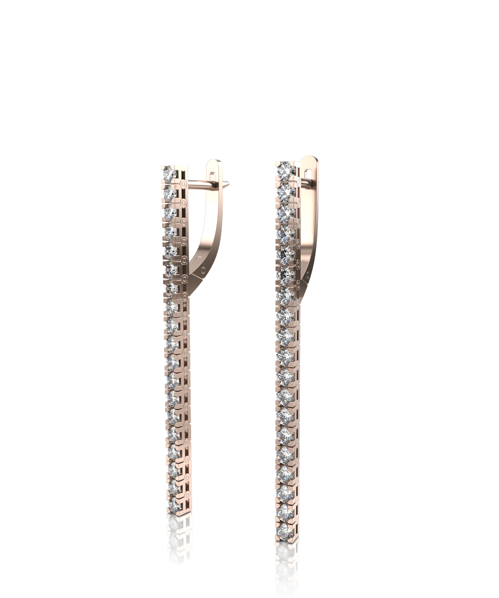 Стильные серьги из красного золота 585 пробы, украшенные россыпью бриллиантов .