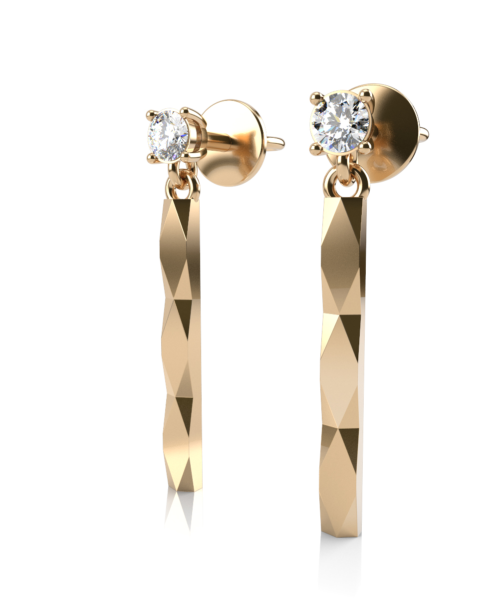 Серьги из желтого золота с выращенным бриллиантом